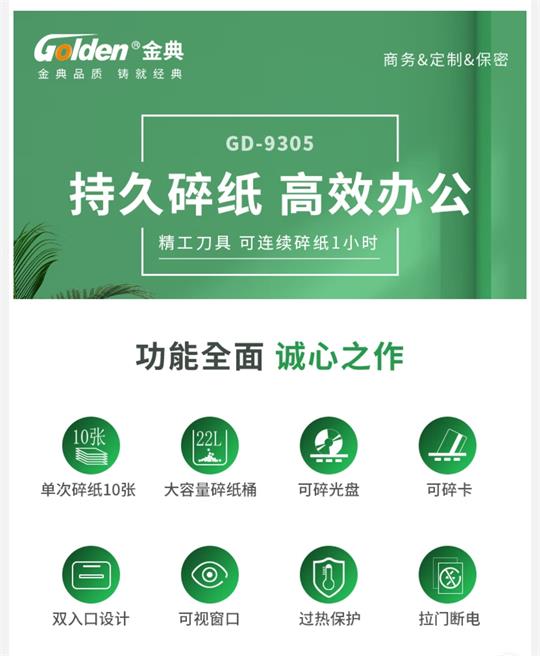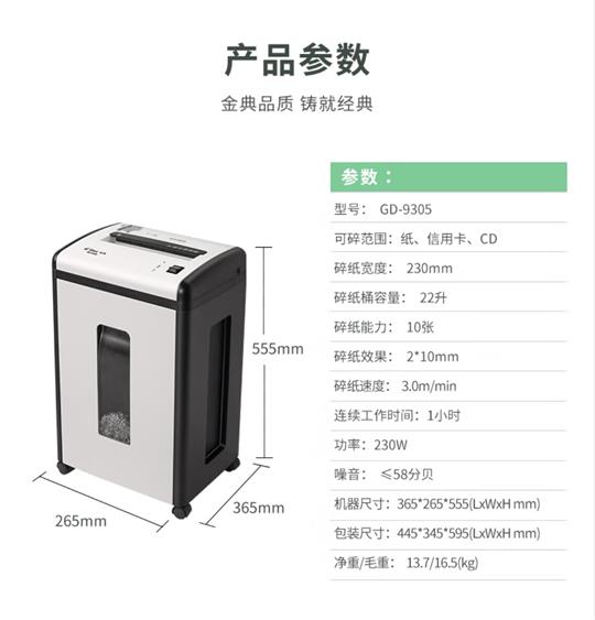 金典 GOLDEN GD-9305碎紙機(jī),10張,60分鐘;
